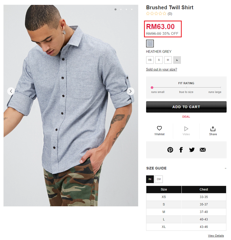 ▼ Brushed Twill Shirt 折扣35%后只需RM63(原价RM96)