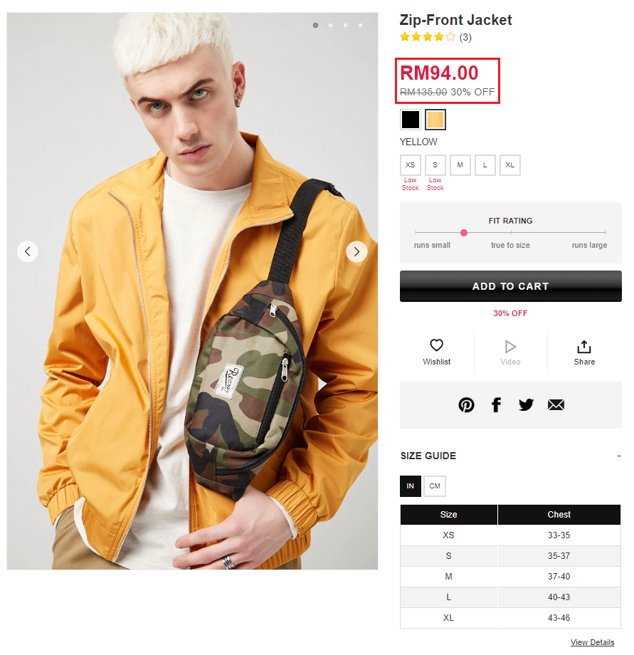 ▼ Zip-Front Jacket 折扣30%后只需RM94(原价RM135)
