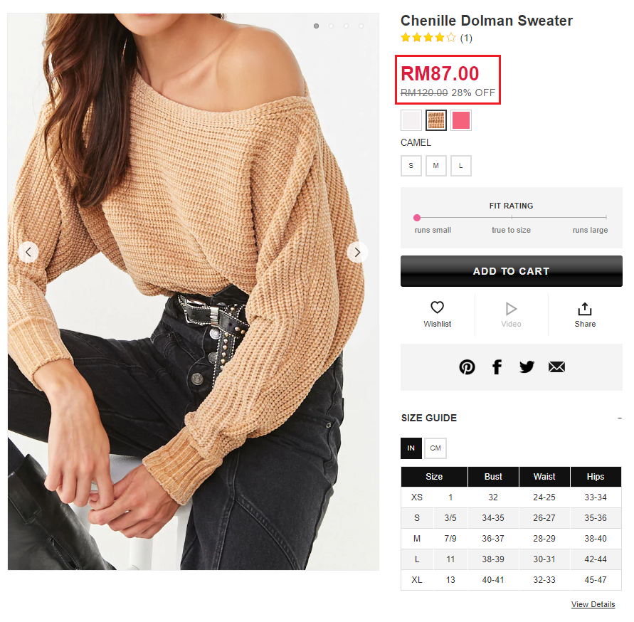 ▼ Chenille Dolman Sweater 折扣28%后需RM87(原价RM120)