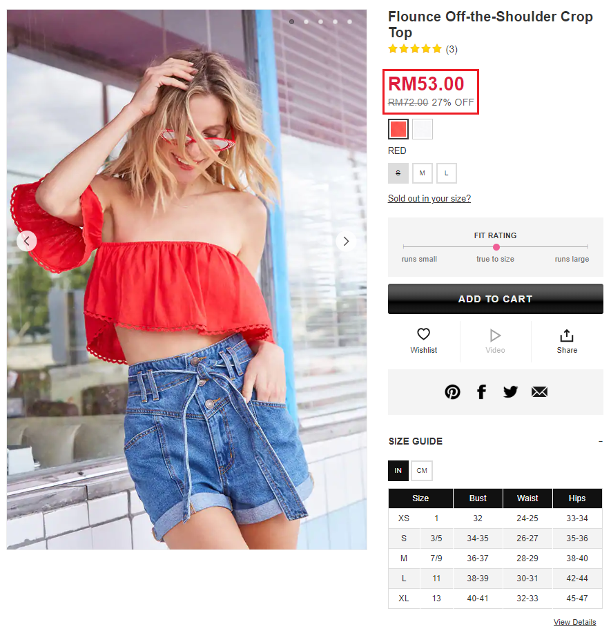 ▼ Flounce Off-the-Shoulder Crop Top 折扣27%后只需RM53(原价RM72)