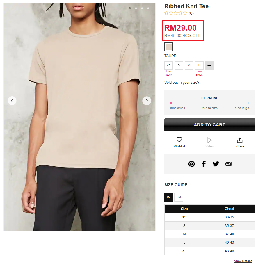 ▼ Ribbed Knit Tee 折扣40%只需RM29(原价RM48)