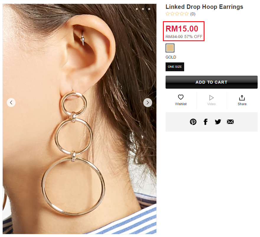 ▼ Linked Drop Hoop Earrings 折扣57%后只需RM15(原价RM34)