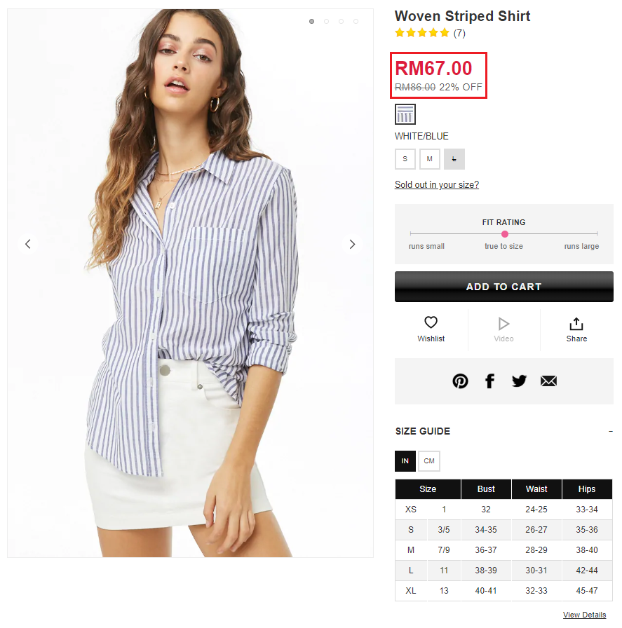 ▼ Woven Striped Shirt 折扣22%后只需RM67(原价RM86)