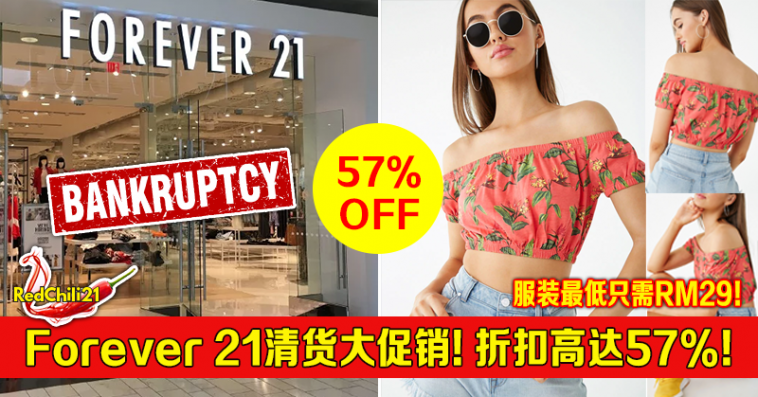 Forever 21伴随着年轻人走过无数个的顶尖潮流!虽然大马门市店还未公告关于关闭的情况!不过他们的官方网站还会继续营业!如今还推出清货大促销优惠哟!而且还折扣高达57%!