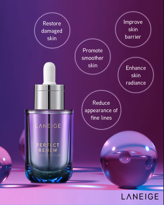 如果想要拥有女神李圣经那光彩透亮的脸蛋~那就要使用Laneige推出新品「致美紧颜修护精华液」Perfect Renew Regenerator啦!