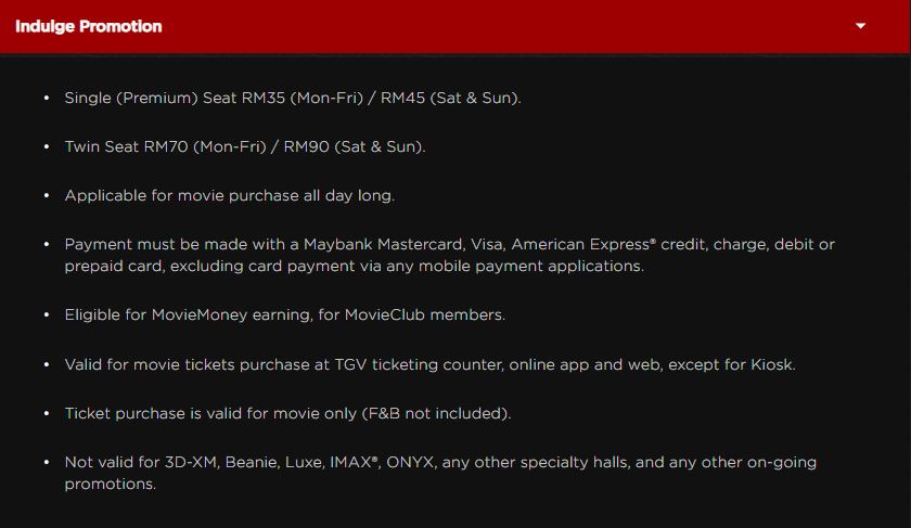 - 单人Premium座位只需RM35(星期一和星期五)/RM45(星期六和星期日)