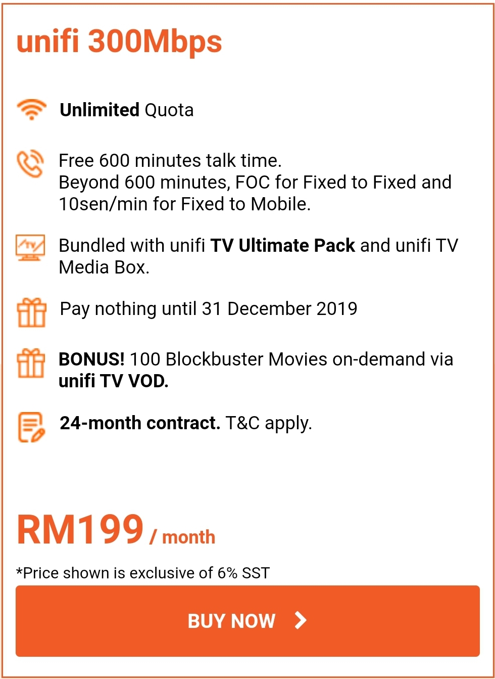 ▼ ④ Unifi 300Mbps – RM199 / 每月