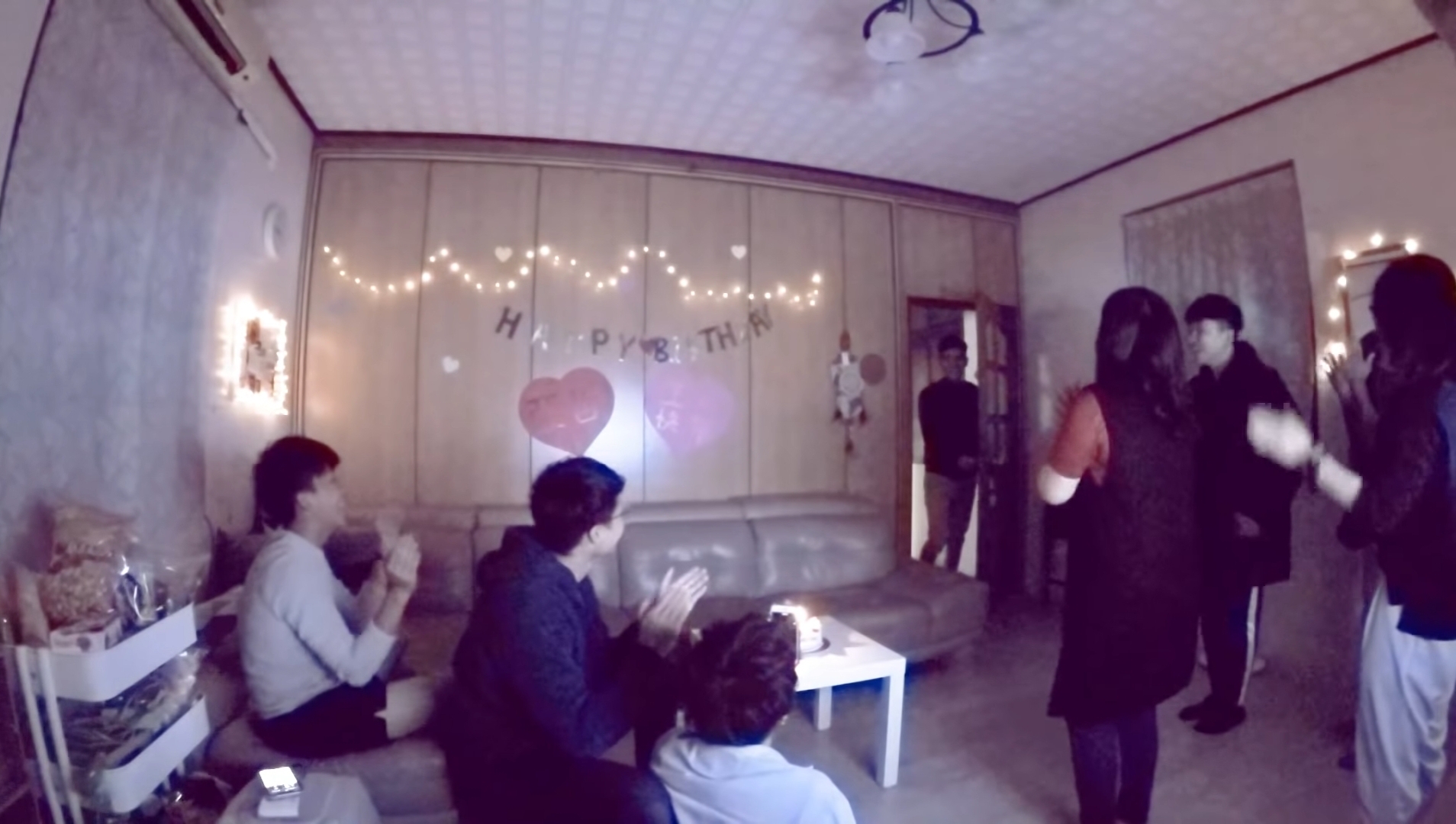 就在我开始许第三个愿望的中间,家里的电视突然亮了起来,偷偷躲起来的家人朋友也跟著出来。