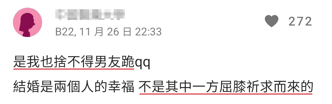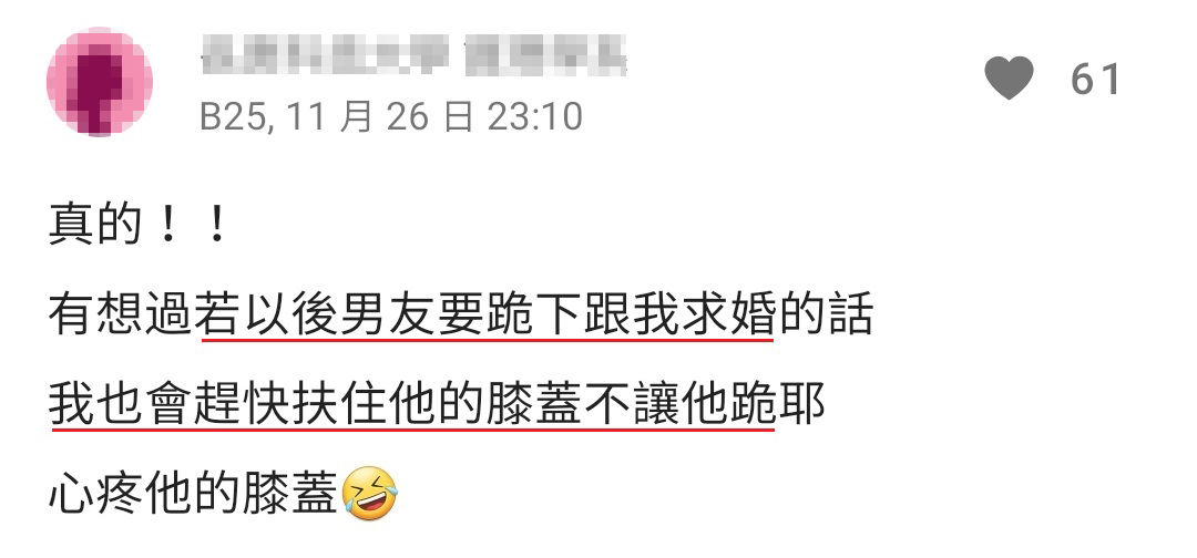 ▼ 一些网友表示:自己也舍不得让男友跪下!