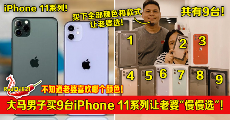 原来男子为了确保老婆能够收到她最心仪的礼物,他直接买下了 iPhone 11、iPhone 11 Pro 和 iPhone 11 Max 的各种颜色款式,共9台 iPhone 11 系列手机,让妻子“慢慢选”!