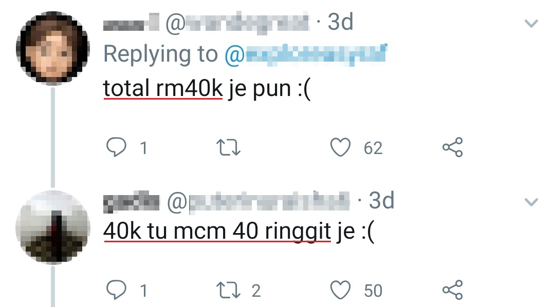 ▼「总共 RM40,000,但他买得像RM40而已!」