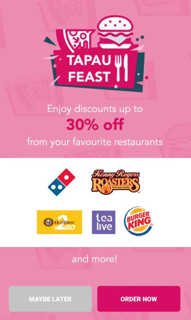 - 此优惠需要通过Touch ‘n Go eWallet中的“Pay”功能付款