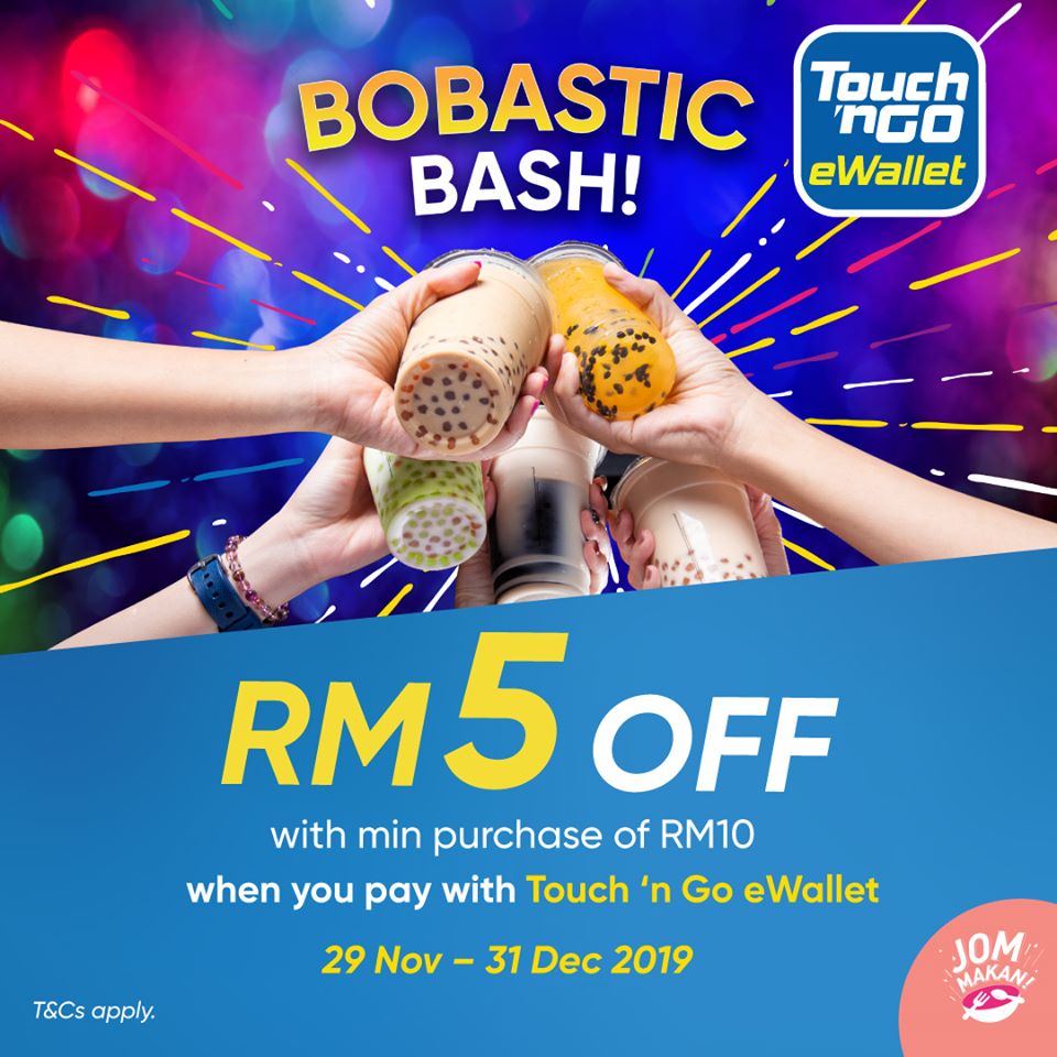 只要亲临指定的奶茶店分行,购买价值RM10或以上的饮料,并使用Touch ‘n Go 电子钱包付款,就可享有RM5的折扣啦~