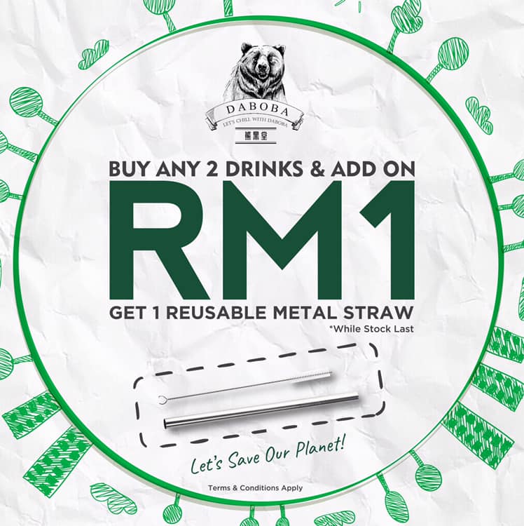 如今大马熊黑堂也参与其中~只需购买2杯饮料就能以RM1的优惠价获得一支不锈钢的吸管啦!