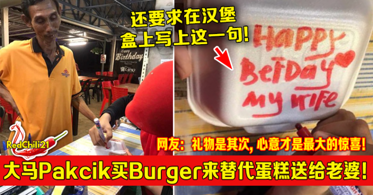 原来该名“Pak Cik”来不及在蛋糕店购买蛋糕,所以才会想到购买汉堡来替代蛋糕送给妻子!希望妻子在生日当天拥有一个难忘及惊喜的生日!