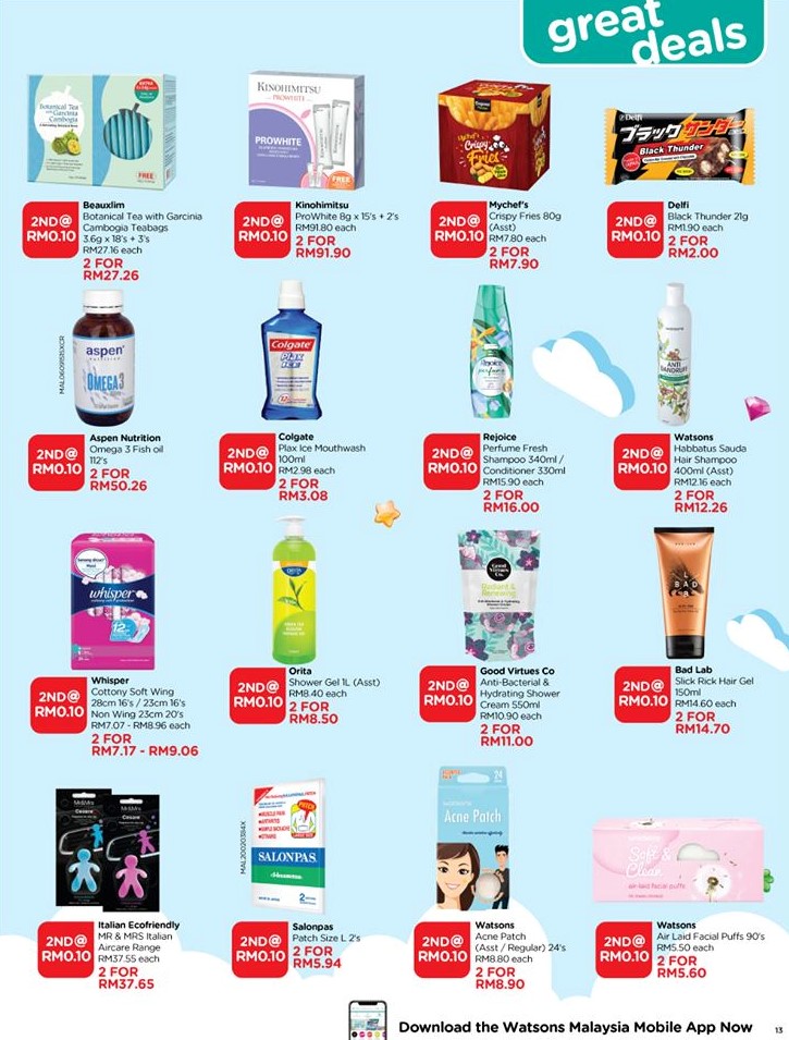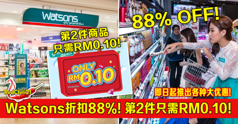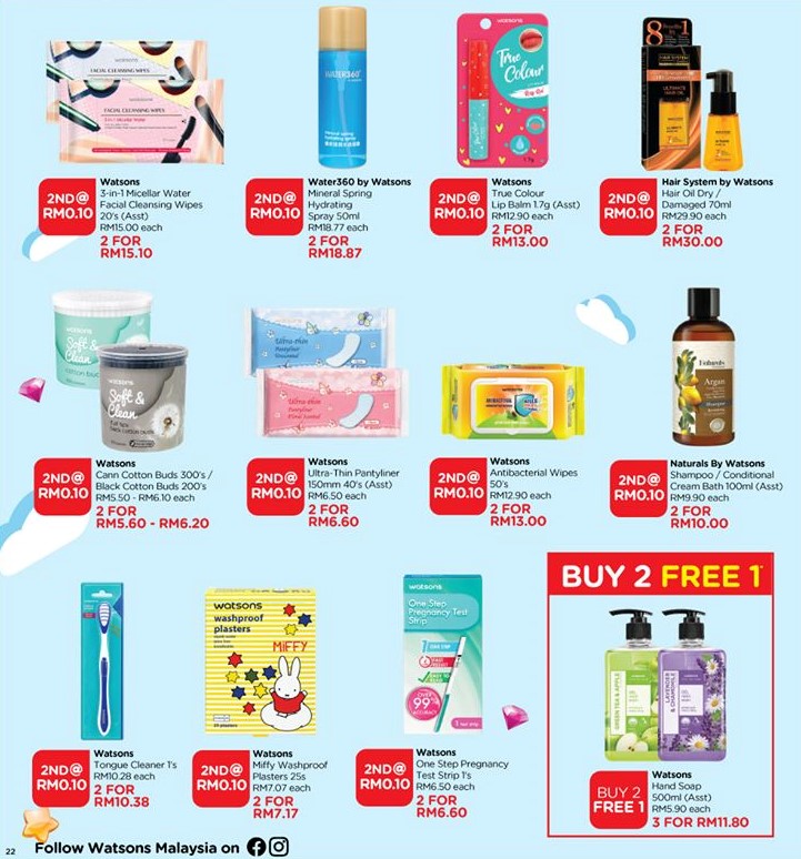 此外,Watsons 早前也推出了特别优惠。只要购买以下的指定商品,第2件只需RM0.10!