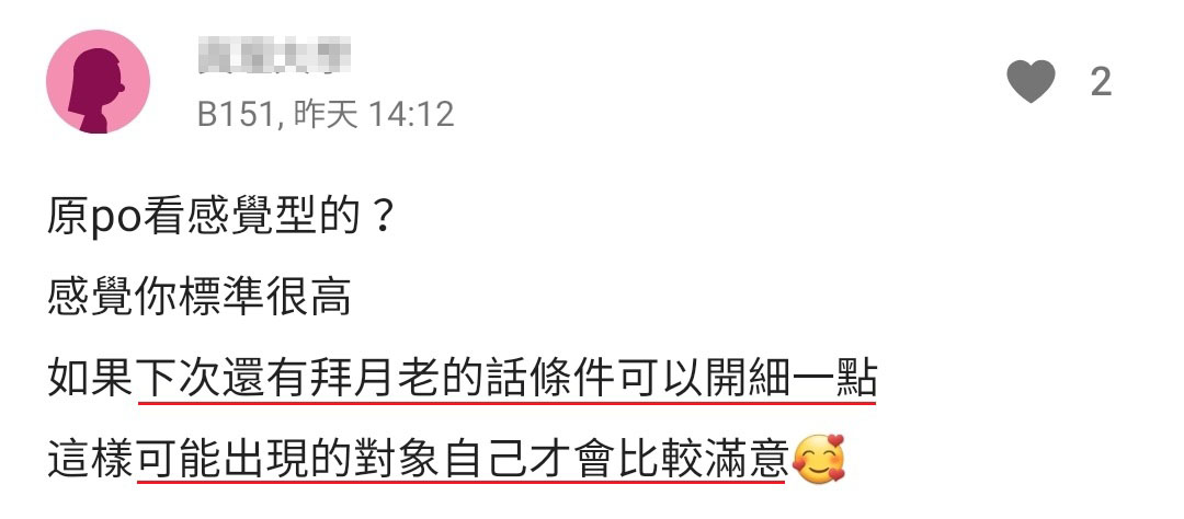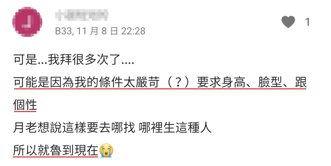 貌似过两三个礼拜就出现一个成大理工科男、身高177cm(台北台南够远😁),虽然后来因为一些原因没在一起,但他真的是很棒的对象。