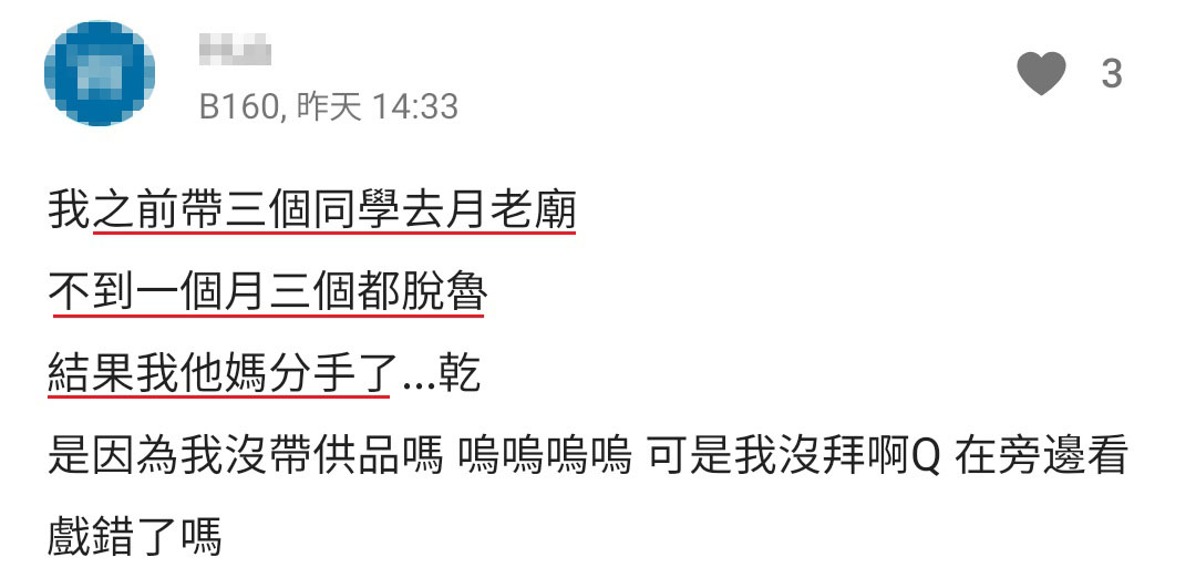 我从来就不觉得拜个月老就一定脱鲁,但起码我上述的每个经验都让我感到震惊😱