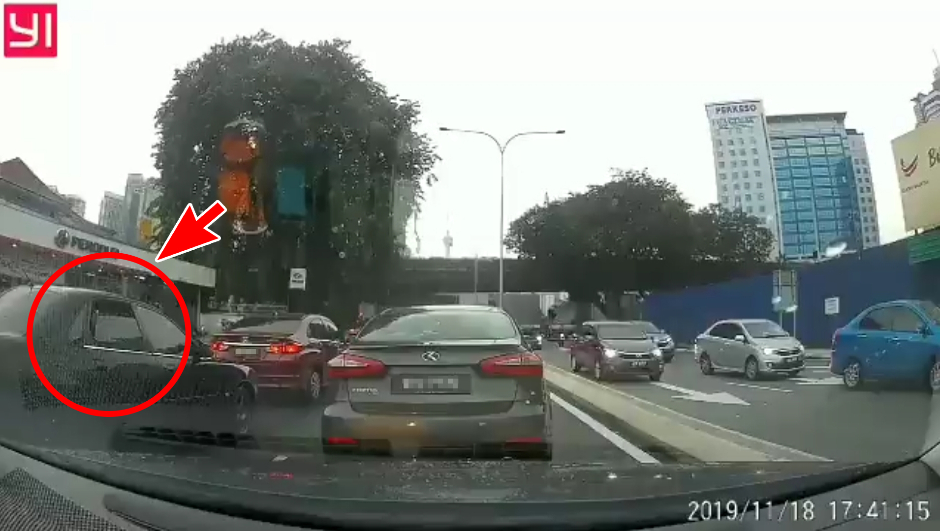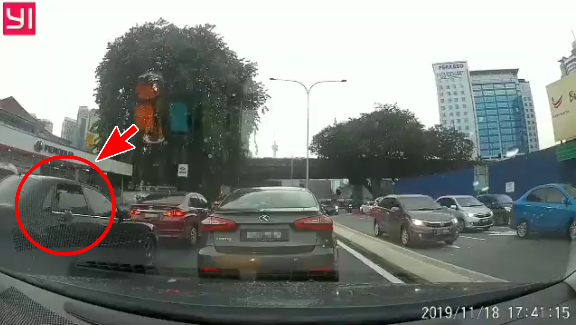 ▼ 视频的一开始,左前方有一辆黑色轿车,而该轿车的后车窗突然开了。