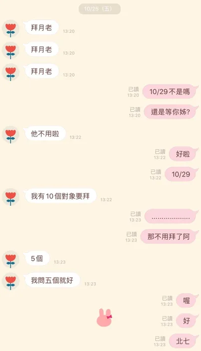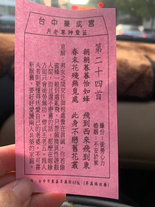 早上出门前,表弟还特地打给朋友问说 拜月老的步骤~