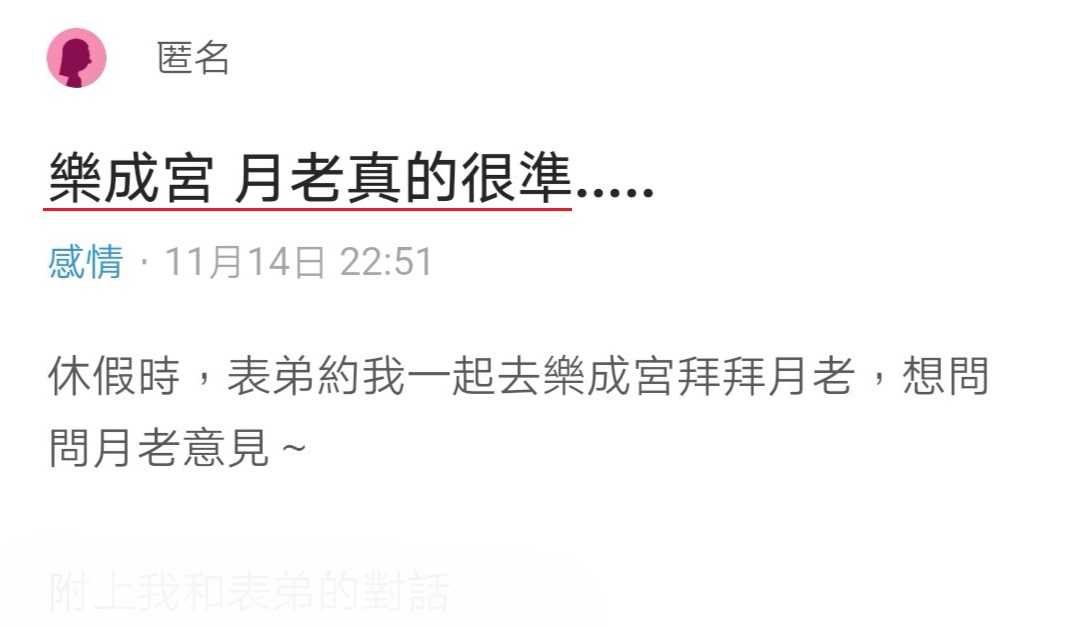 表弟: 欸….那个乐成宫月老怎么拜啊?