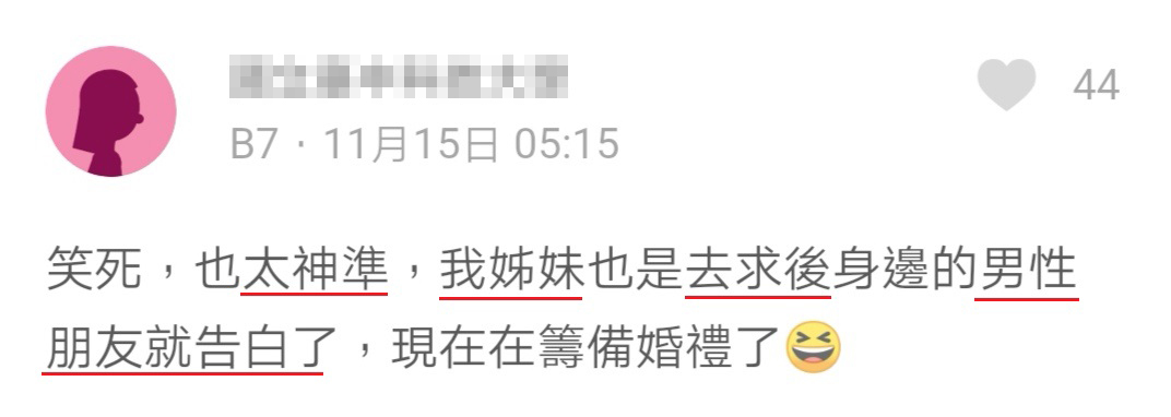 ▼ 不过,有网友透入“姐妹去求月老后身边的男性朋友就向她告白了!”