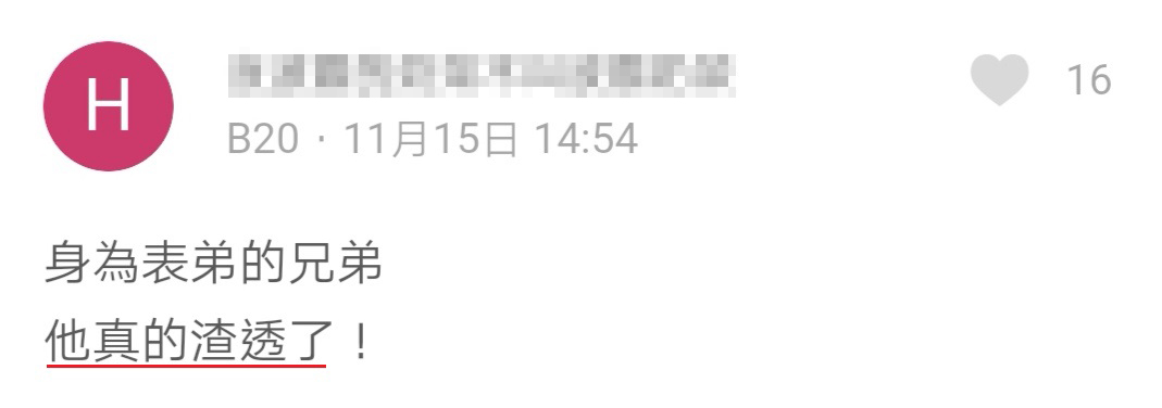 ▼ 有网友表示“身为表弟的兄弟,都觉得他真的渣透了”!