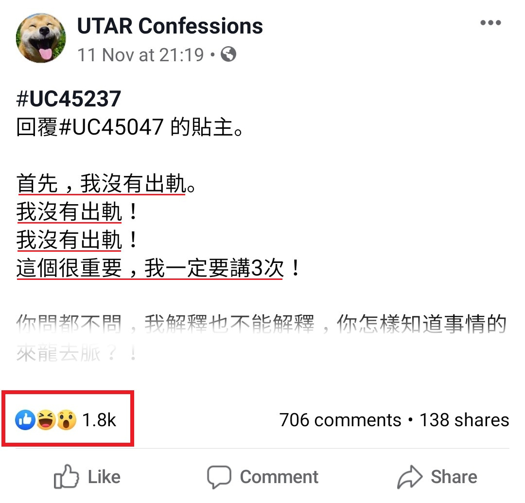 而且你竟然幼稚到post confession,我身边的朋友一看就知道是你写的,你有顾及我的面子吗?!是男人就出来面对,不要在那边自己发挥自己的想像力。