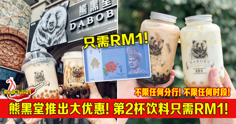 只要在 Daboba 分行购买任何饮料,第2杯指定饮料只需RM1!