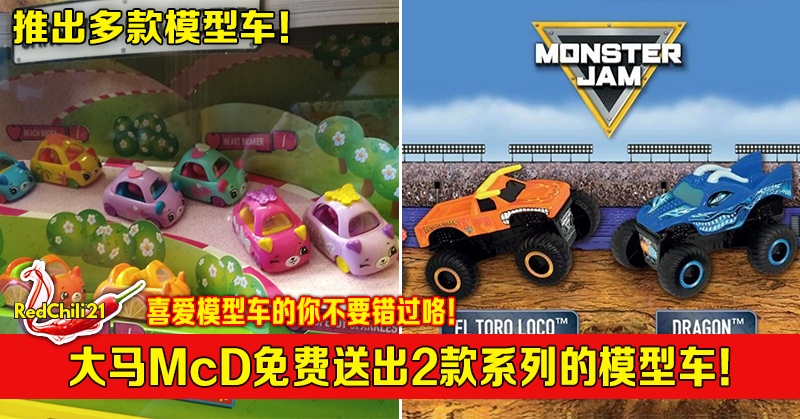大马McDonald’s免费送出【Monster Jam】及【Shopkins Cutie Cars】系列模型车!