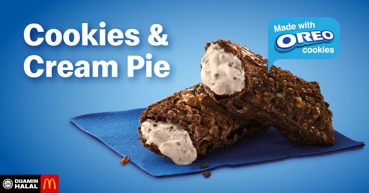 除了冰淇淋,麦当劳还推出了全新的甜品,那就是 Cookies & Cream Pie!使用 Oreo 饼干制成,味道又香又甜,你怎么能不尝一口?!