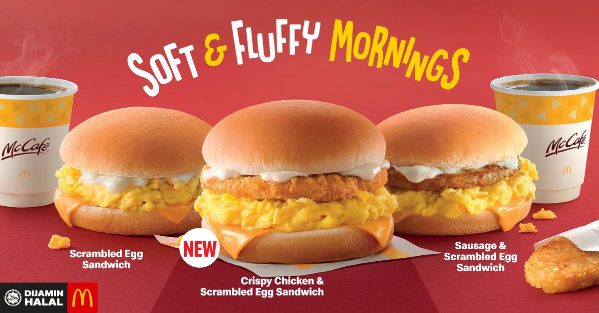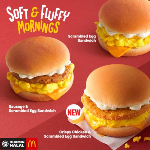 麦当劳的早餐终于有新菜单咯!除了有经典的 Scrambled Egg Sandwich 三明治,即日起还推出了全新的 Crispy Chicken & Srambled Egg 三明治!香脆的鸡肉夹在鸡蛋三明治里,绝对令人垂涎三尺!