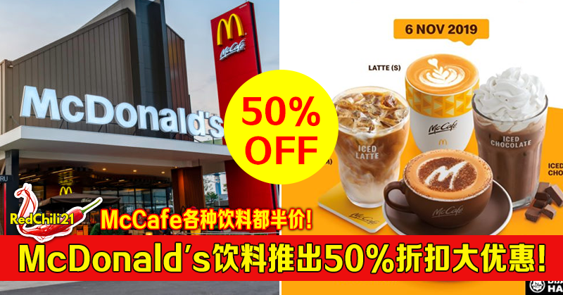 大马McDonald’s饮料推出50%折扣大优惠!McCafe各种饮料都半价!