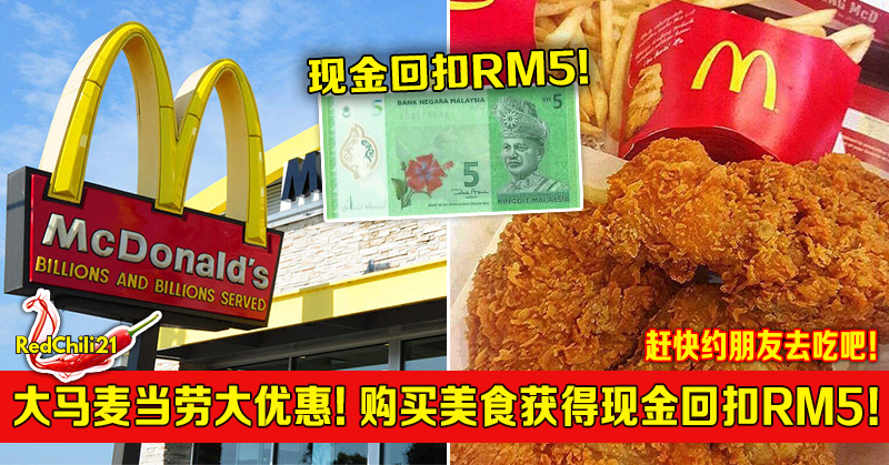 大马麦当劳推出大优惠!购买美食获得现金回扣RM5!