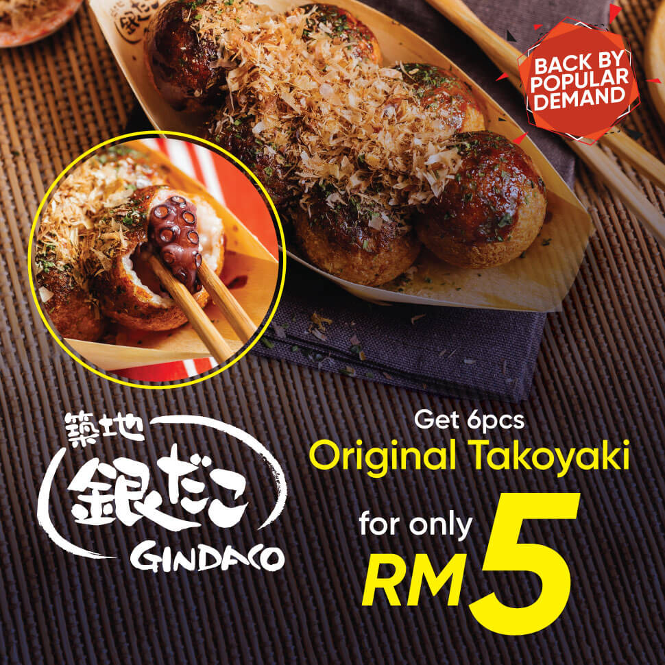▼ ③ Gindaco 1份 Original Takoyaki (6pcs) 只需 RM5 !