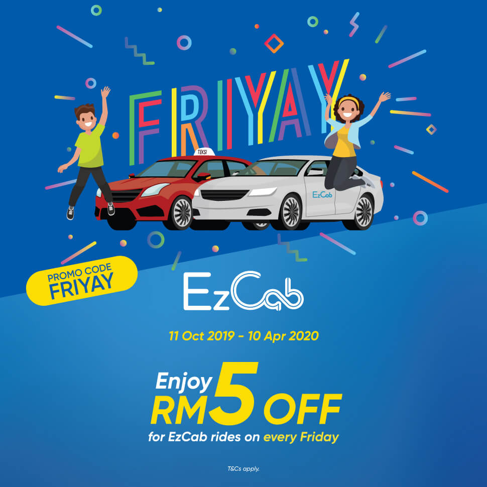- 使用 EzCab App 时输入 Promo Code:FRIYAY,付款方式选择 Touch ‘n Go eWallet,即可享有此优惠。