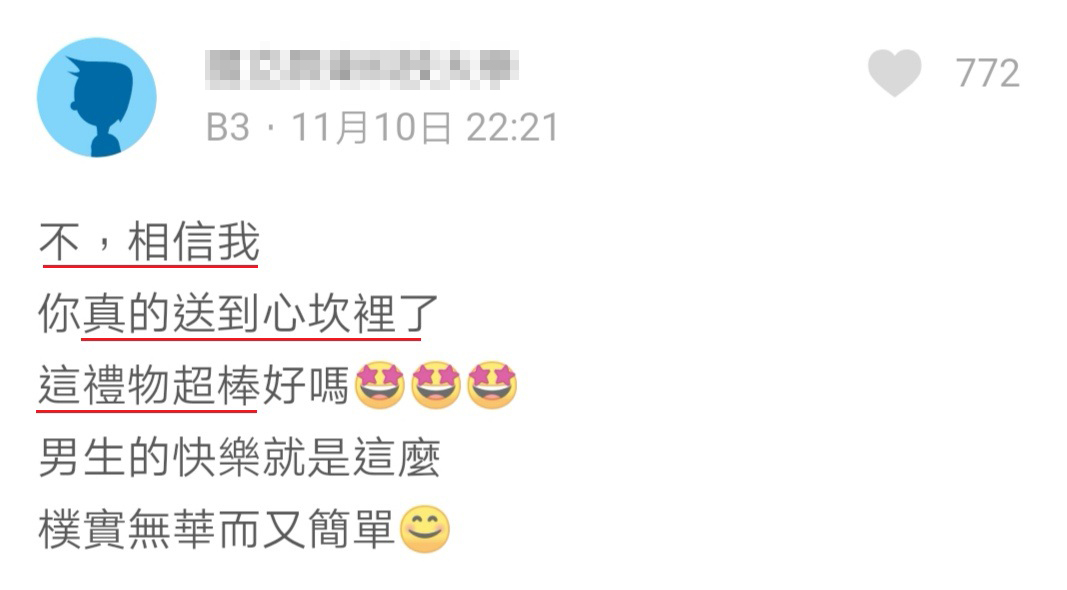 ▼ 最后,网友觉得帖主超用心才会送男友这份“礼物”!男生的快乐就是这么简单!