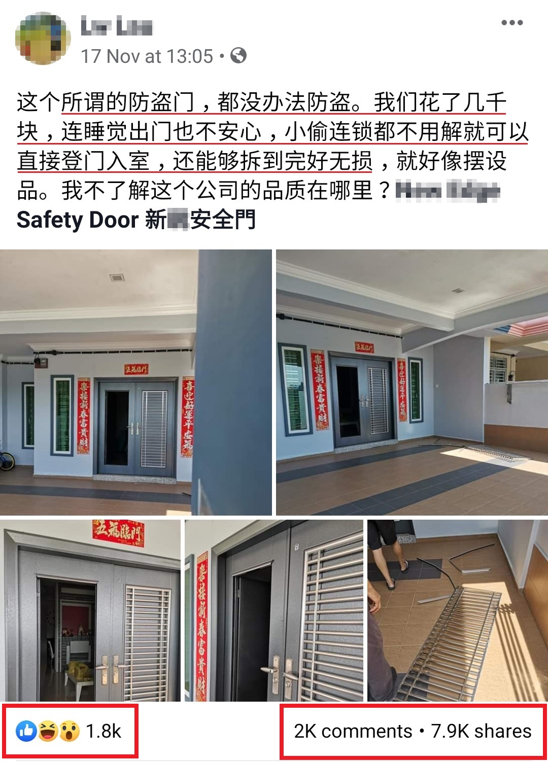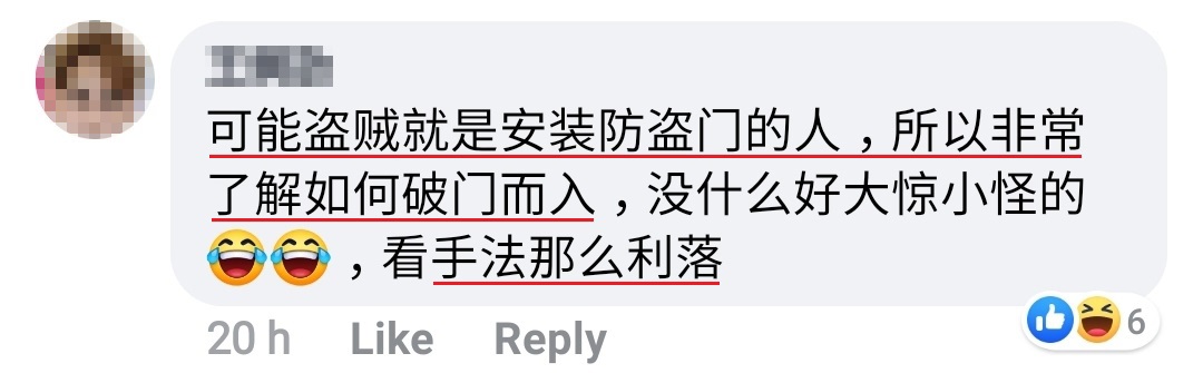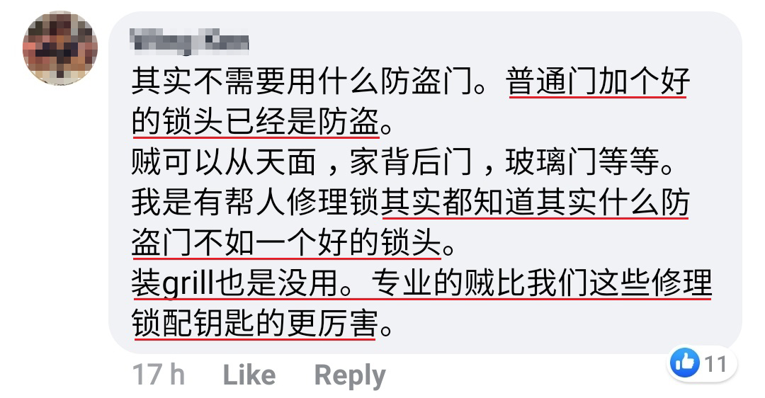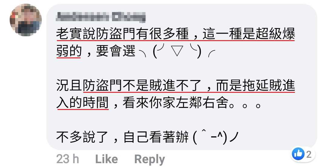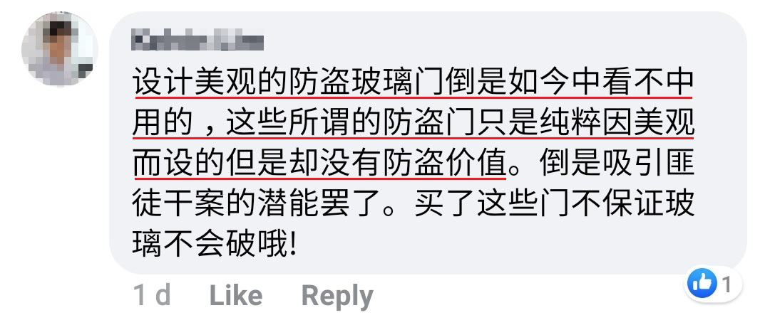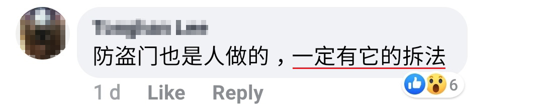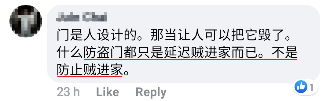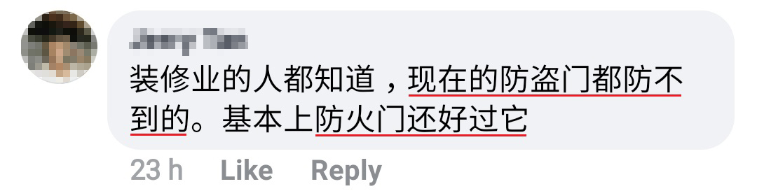 一名大马网友在面子书 PO 文,花了马币几千块安装防盗门,现在却连睡觉都不安心!