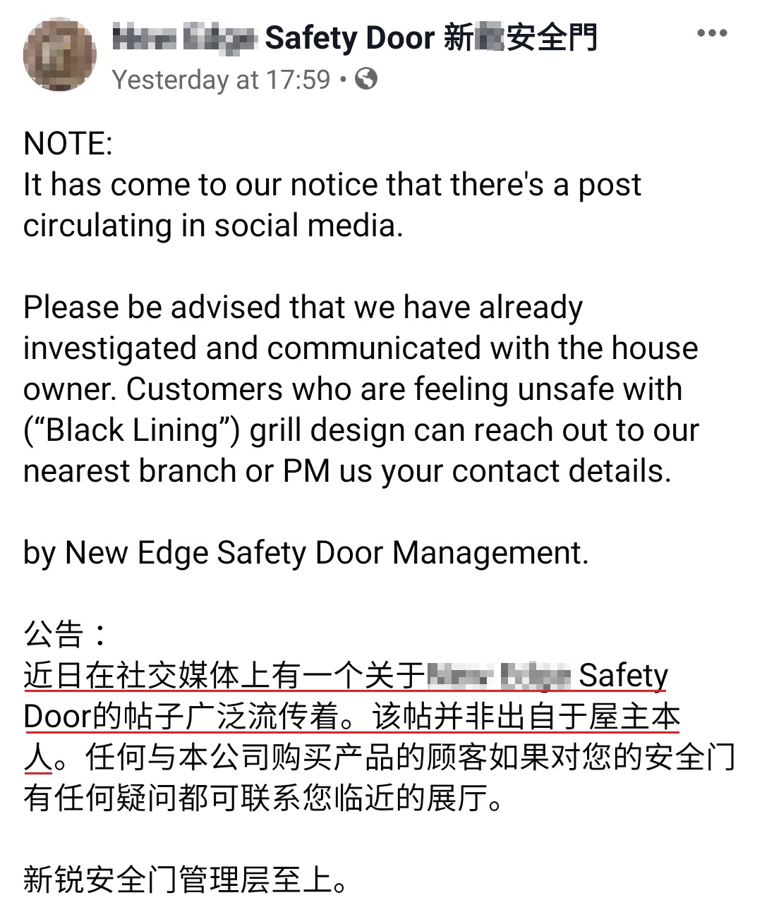 该公司在帖文说道,他们已经向屋主求证,该帖文并没有屋主本人发布的。
