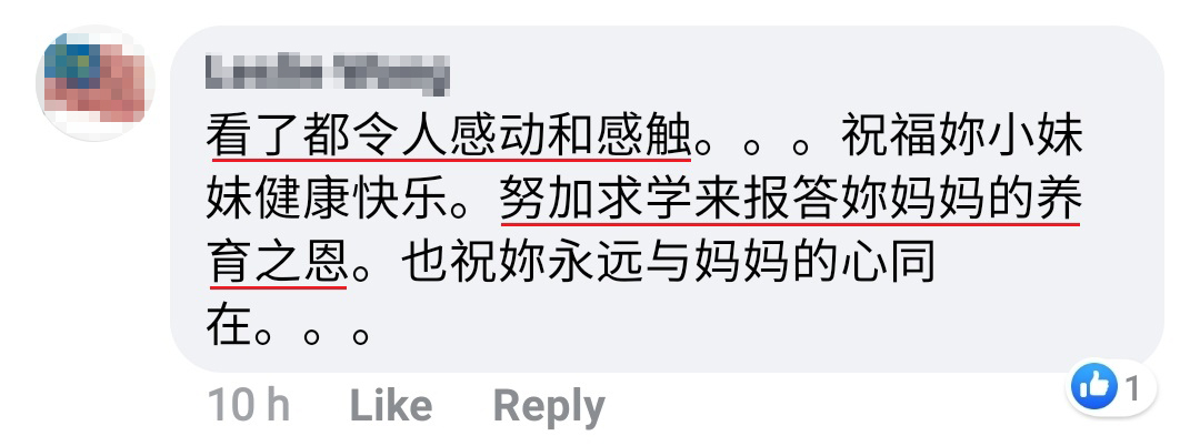该帖文在面子书感动了广大网友们,一天内就超过5千人转发以及多达10,000人按赞!