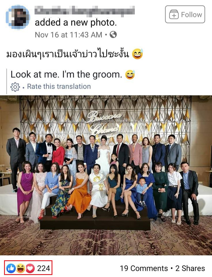 近日,泰国一名网友在面子书上发布了一张参加朋友婚礼的合照,而这场结婚典礼最令人瞩目的亮点就是这对相差50岁的新人啦!