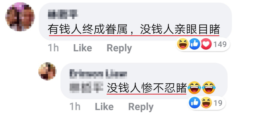 ▼ 也有网友表示“有钱人终成眷属,没钱人亲眼目睹”!