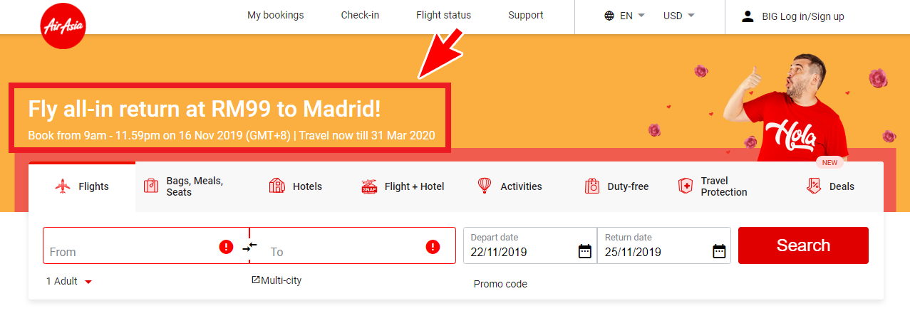 促销活动:AirAsia 从吉隆坡飞往马德里只需RM99!