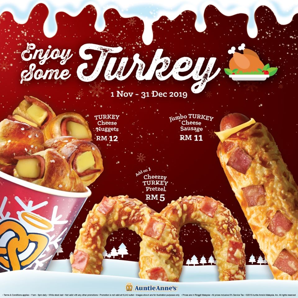 这次Auntie Anne’s推出了3种圣诞火鸡餐点: