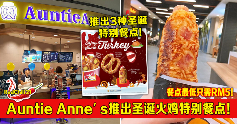 大家都知道~圣诞节的习俗就是吃火鸡啦!如今大马Auntie Anne’s推出了圣诞火鸡特别餐点哦!