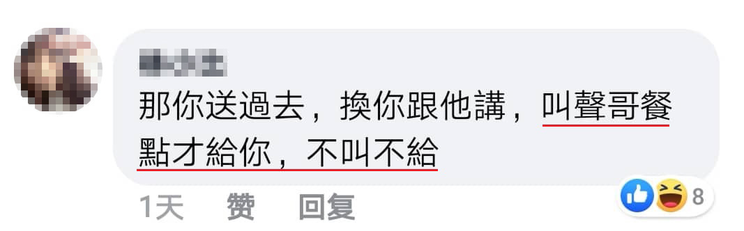 ▼ 有网友给出建议“不如请客人叫外送员一声“哥”才把食物交给他!不叫就不给”