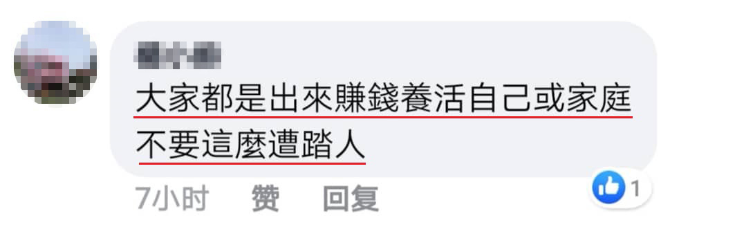 ▼ 网友看完后表示「大家都是出来赚钱养活自己及家庭,不要这么糟蹋人!」