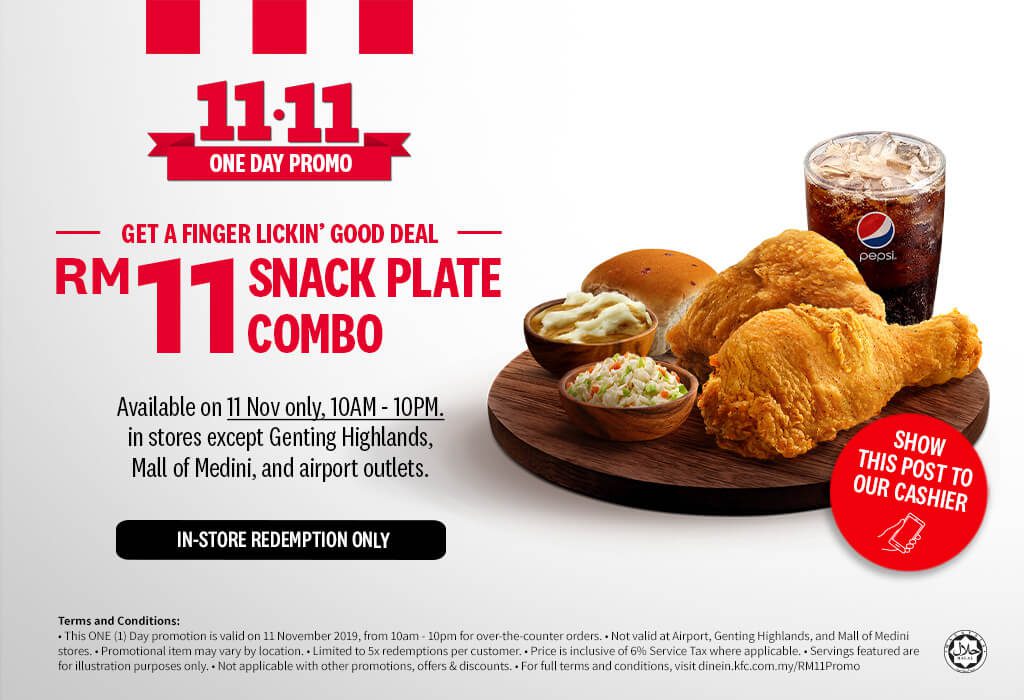 大马KFC为了配合11月11日的到来,再次推出了超值优惠套餐来回馈大家!