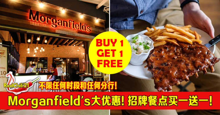 Morganfield‘s大优惠!招牌餐点买一送一!不限任何时段和任何分行!