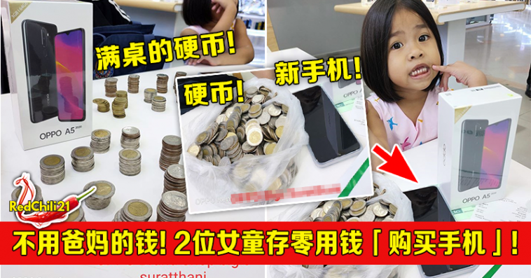 近日,泰国一家手机店在面子书专页分享一件趣事,两位女童领着一大袋的零钱来店里购买手机!